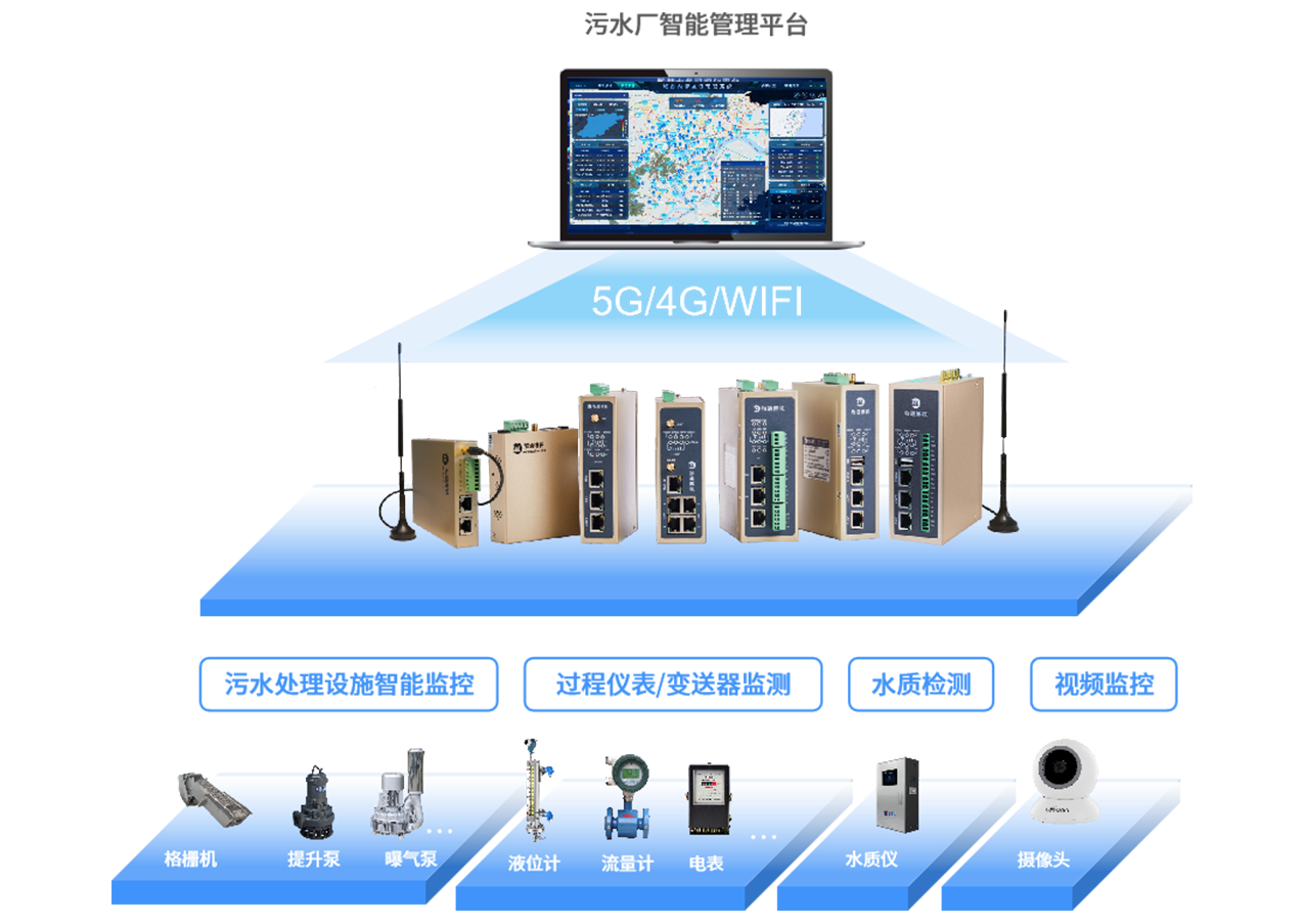 借助物通博聯(lián)的工業(yè)智能網(wǎng)關,實時采集污水處理廠內(nèi)各類設備(如水泵、風機、格柵機等)的運行數(shù)據(jù),包括運行狀態(tài)、電流、電壓、溫度等,以及污水的流量、水質(zhì)指標(如化學需氧量、氨氮、懸浮物等)。將采集到的數(shù)據(jù)傳輸至污水處理遠程監(jiān)控平臺,進行數(shù)據(jù)存儲、分析和展示。平臺可對設備運行狀態(tài)進行實時監(jiān)測,當設備出現(xiàn)異?;蛩|(zhì)指標接近超標時及時發(fā)出預警,并提供故障診斷和處理建議。同時支持遠程運維操作,如設備參數(shù)調(diào)整、啟??刂频?,實現(xiàn)對污水處理廠的高效管理。