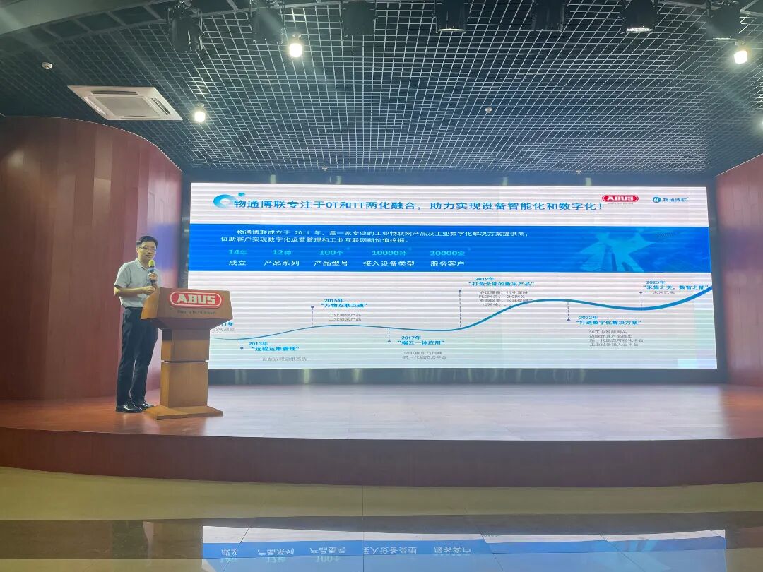 會上,劉明德總經理圍繞物通博聯(lián)在工業(yè)物聯(lián)網領域的技術積累、項目經驗展開詳細介紹,并針對本次萬暉五金設備數(shù)據(jù)采集項目的具體規(guī)劃、核心技術方案、實施團隊配置及全流程運維保障進行了全面闡述。從項目啟動后的需求落地、設備接入,到數(shù)據(jù)采集、分析應用,再到后期持續(xù)運維服務,每一個環(huán)節(jié)的部署都清晰明確,讓在場嘉賓對項目的順利推進與成功落地充滿信心。