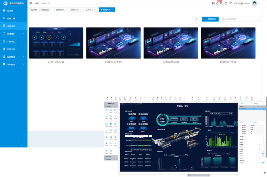 全新拖拽式大屏編輯器,無需編程即可快速構(gòu)建數(shù)據(jù)駕駛艙。支持自定義組件上傳,滿足企業(yè)對數(shù)據(jù)可視化的多樣化需求,實時展示設備運行狀態(tài)、生產(chǎn)效能等關鍵指標。