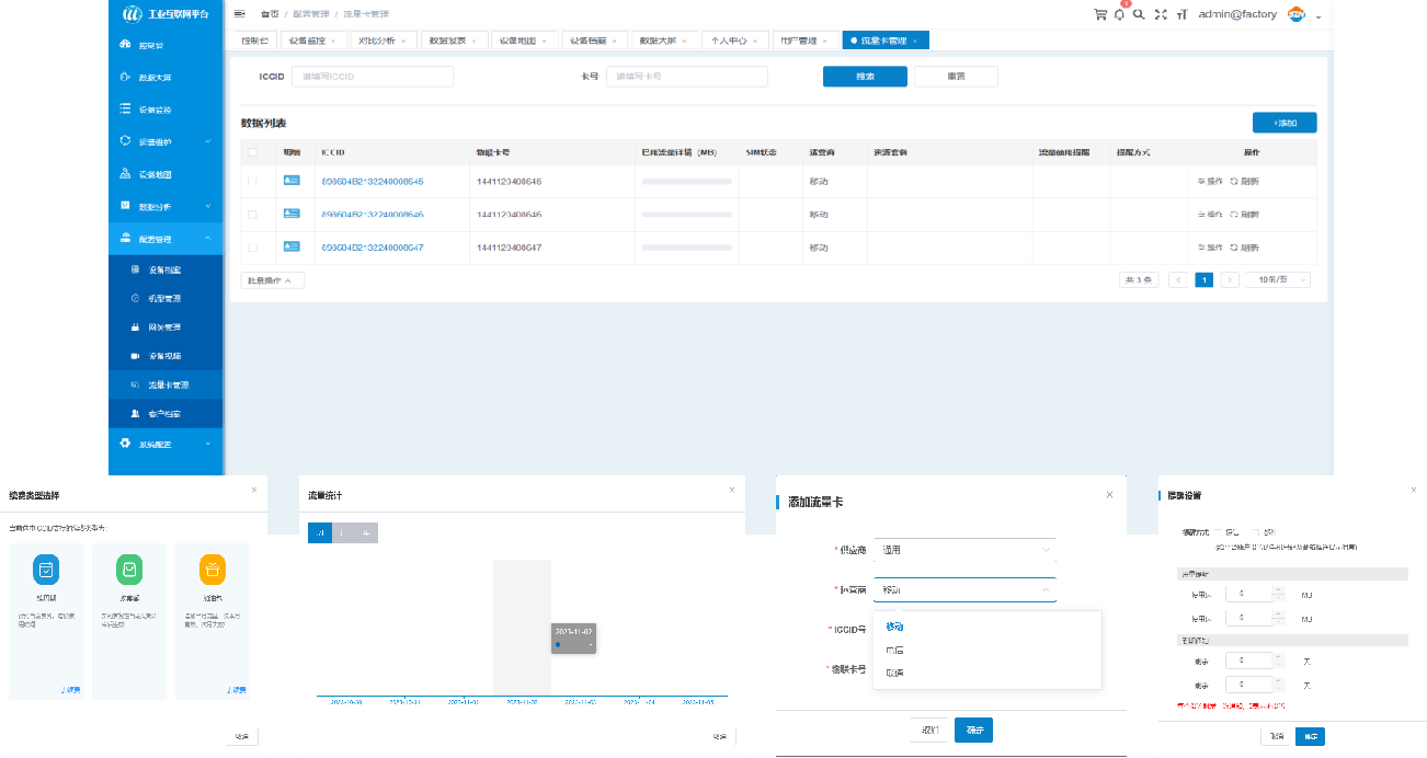 統(tǒng)一管理三大運營商物聯(lián)卡,實時監(jiān)控流量使用情況,支持充值續(xù)費與預警通知,確保設備永遠在線。